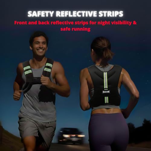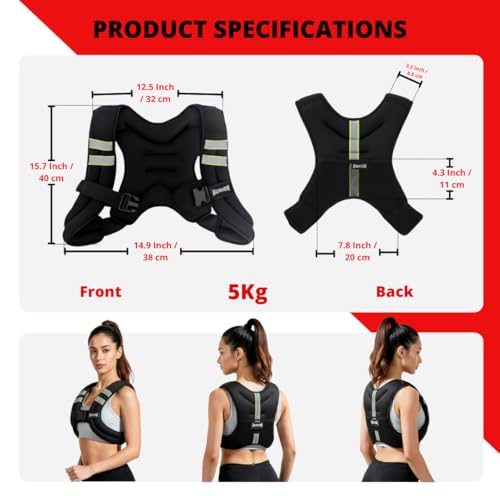 Aurion 5kg Weighted Vest, Running Jacket Vest for Men, Single Adjustable Buckle, Sweat Proof Breathable Neoprene, Padded Shoulder, Even Weight Distribution, Reflective Safety Strips, Mesh Back Pocket
