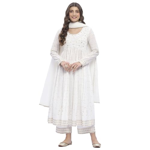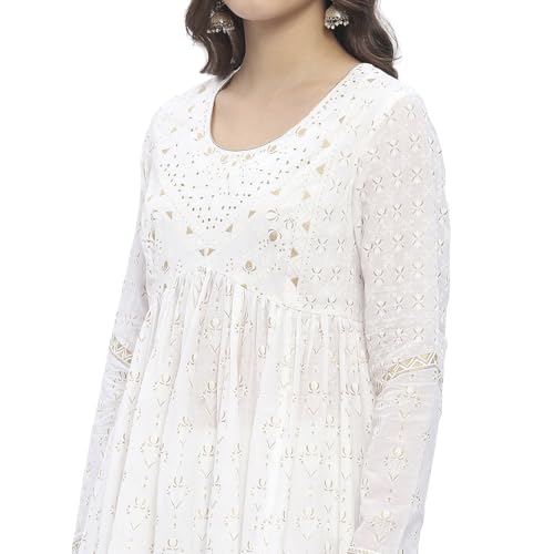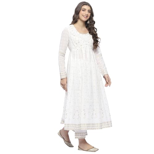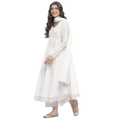 Biba Women’s Off White Cotton Anarkali Kurta Sets