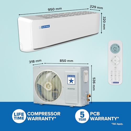 Blue Star 1 Ton 5 Star,Smart Inverter Split AC (Copper, Convertible 5 in 1 Cooling, DigiQ Hepta Sensor, Blue Fins, Self Diagnosis, IA512ZXUS, White)